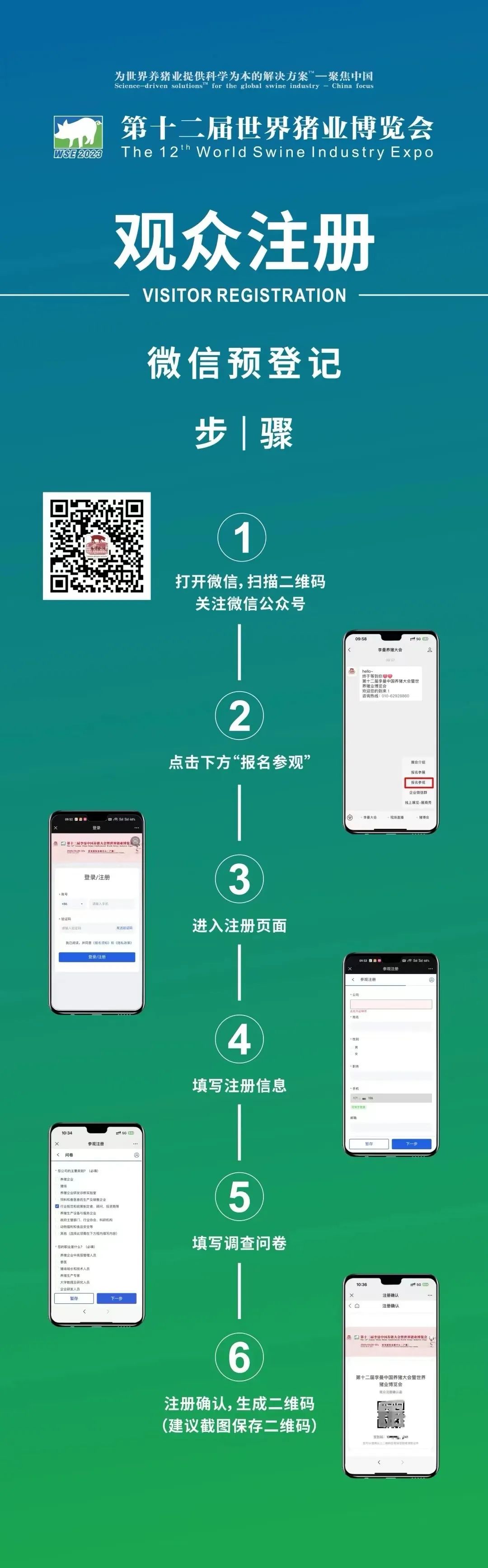 專屬參觀碼可截圖保存或進入李曼養豬大會微信公眾號,點擊菜單欄【豬博會】-【報名參觀】找到您的參觀碼;