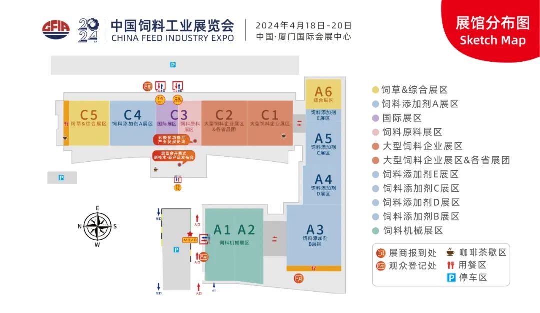 11個展館(C1-C5,A1 2024中國飼料工業展覽會即將盛大啟幕!