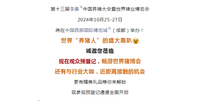 第十三屆世界豬業博覽會預登記通道全面開啟,“碼”上預登記,快人一步搶商機!