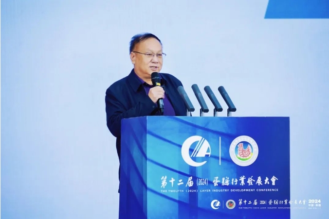中國畜牧業協會第四屆理事會會長、戰略指導委員會主任李希榮致辭。他在致辭中指出,當前宏觀經濟形勢復雜,全球經濟復蘇乏力,國內產能過剩與消費不足矛盾突出。由于雞蛋剛性需求及未受進口和跨界資本沖擊,蛋雞產業相對平穩,目前已入成熟發展期,具有規模化、標準化等特征,產業總體進入微利時代。對于產業發展,他強調,穩產能、降成本是關鍵所在,行業需確定調控指標達成共識,避免盲目擴張。同時,建議企業應注重品質提升和品牌建設,以引導和促進消費。