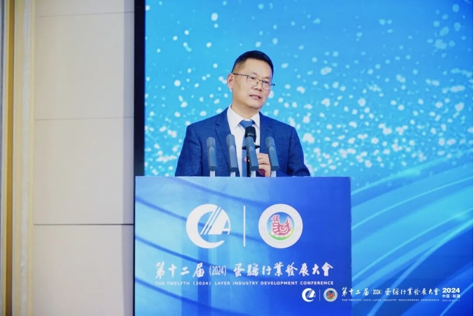 新疆維吾爾自治區農業農村廳畜牧局局長孫家鵬致辭。他在致辭中指出,本屆大會在新疆舉辦是對新疆蛋禽產業高質量發展的促進,會議匯集了來自國內蛋禽行業的知名專家、優勢企業和相關領域的優秀代表,對推動產業穩定健康協調發展具有重要意義。希望大家能夠將以此次大會為契機,進一步深化疆內疆外蛋禽企業的合作,加快推動新疆蛋禽產業發展,也請行業同仁能夠持續關注和支持新疆家禽產業的發展。