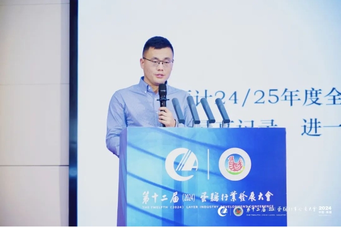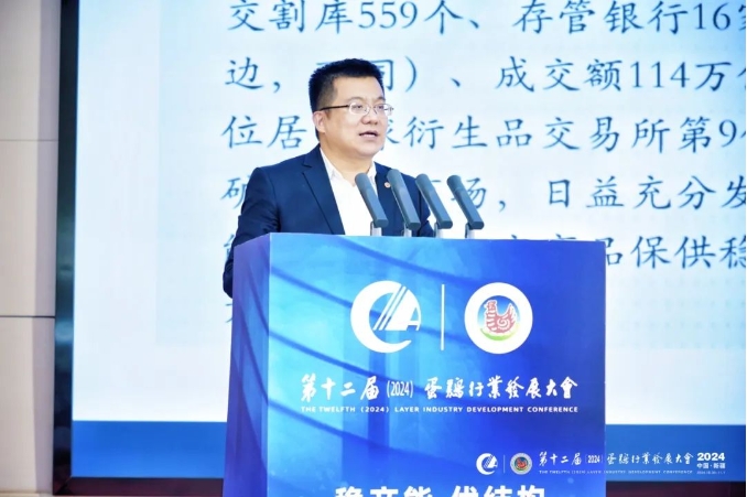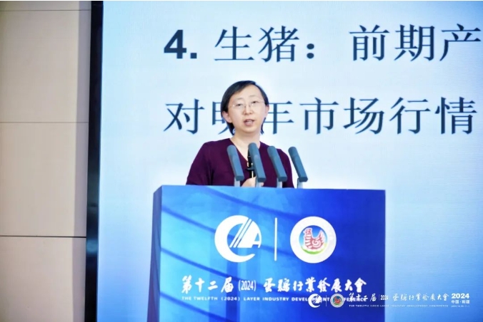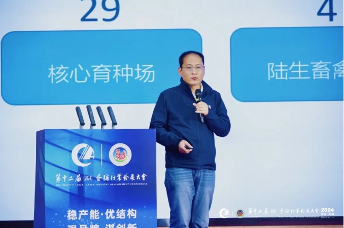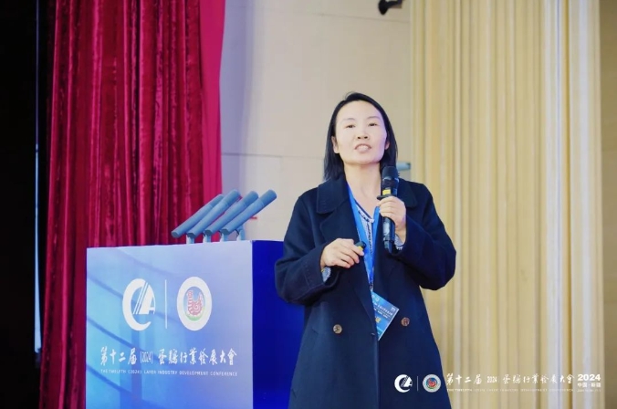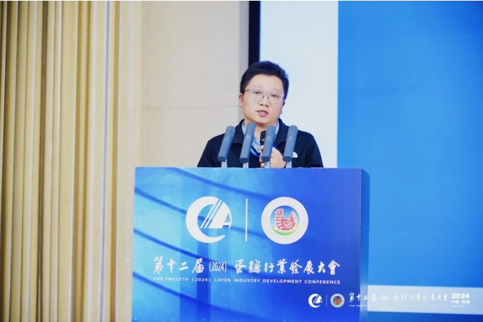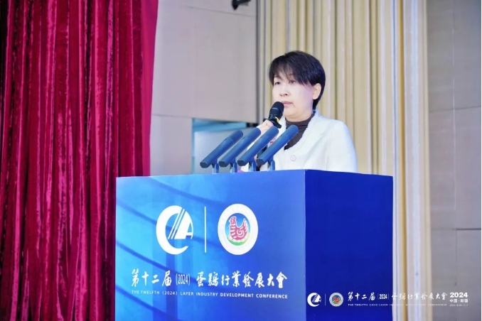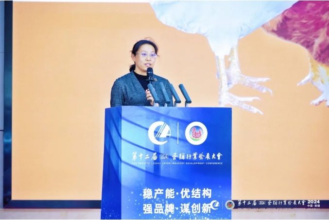 中國畜牧業協會蛋雞業分會秘書長腰文穎作《我國蛋雞行業發展現狀及形勢展望》的報告。她在報告中介紹了我國蛋雞行業發展現狀及形勢展望。包括中國畜禽飼養總體情況,家禽業主要指標數據,禽蛋生產情況等。分析了祖代、父母代蛋種雞及商品代蛋雛雞的存欄、供應、價格等方面數據。指出2024年蛋雞行業的一些變化,如父母代雛雞供應下降等。同時對2025年進行了展望,預計在產蛋雞存欄有變化,養殖效益處于微利狀態,強調需警惕盲目擴產,重視綜合管理人才緊缺問題。