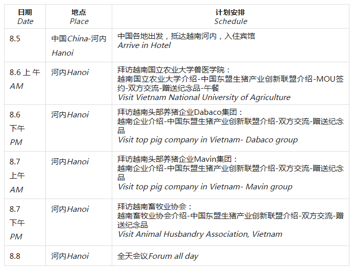 ? 機構交流:中國-東盟生豬產業創新聯盟將與越南頂尖的科研與行業機構簽署合作備忘錄(MOU)。