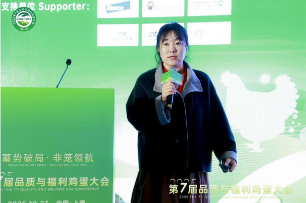 Mr. Sun noted that animal welfare in China is entering a crucial stage, with laying hens showing the fastest progress. In 2024, China produced about 600 billion eggs, yet cage-free systems account for less than 0.1%. He pointed out challenges such as high costs, low premiums, and lack of standards, but emphasized that cage-free production is both a key opportunity and an important path to advance animal welfare and corporate social responsibility.