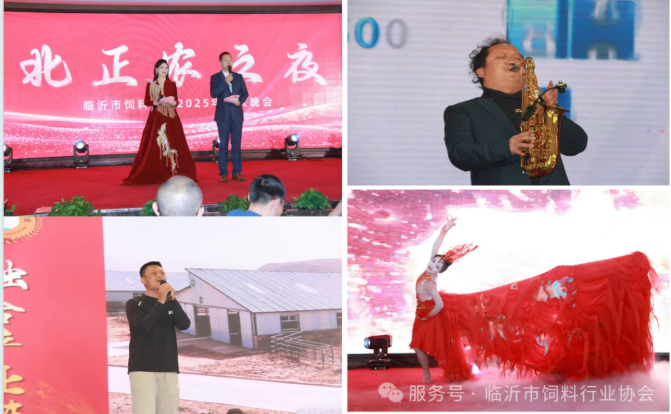 12月25日19:00,由山西北正農生物工程有限公司獨家冠名的“北正農之夜-臨沂市飼料行業2025聯歡晚會”精彩上演。晚會以一段展現協會發展歷程的沙畫表演開場,并通過《初鳴·晨曦》、《淬煉·星火》、《翱翔·守護》、《和鳴·未來》四個詩樂篇章,藝術化地回顧了協會在黨建引領、行業自律、服務企業、推動發展等方面的成長和擔當,弘揚了“沂蒙精神”,凝聚了行業共識。