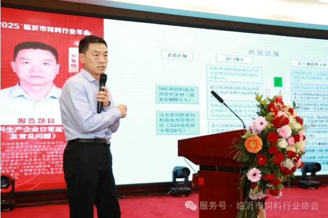 本次年會特設法規宣貫環節,旨在為行業精準傳達政策導向,明晰合規邊界,為產業高質量發展筑牢堅實的法治基石。山東省飼料獸藥質量檢驗中心副主任劉繼明與山東省畜牧獸醫局派駐省政務中心負責人楊志強兩位權威專家,分別就日常監管與生產許可兩大核心領域進行了深入解讀,為與會企業帶來了一場極具針對性的政策“及時雨”。