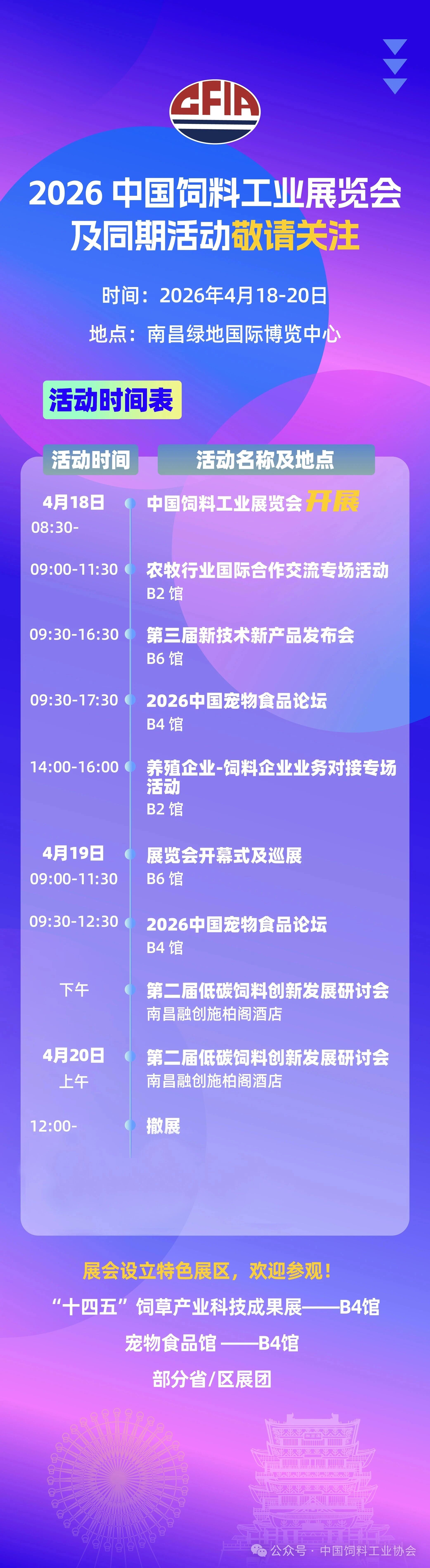4月18—20日 2026中國飼料工業展覽會及同期活動, 如約而至! 敬請關注!