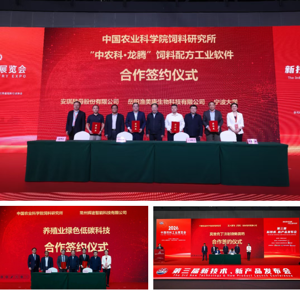 發布會不僅是一個新技術、新產品的展示窗口,更是一個推動產業合作、落地簽約的務實平臺。發布會上,中國農業科學院飼料研究所與多家企業、高校集中簽約。與安琪酵母股份有限公司、岳陽漁美康生物科技有限公司、寧波大學簽署中農科龍騰軟件使用協議,與正大康瑞(河南)生物科技有限公司簽署新獸藥技術合作協議,與常州輝途智能科技有限公司簽署養殖業綠色低碳科技合作協議。這種科研院所與企業的緊密對接新模式,正加速高質科技成果從實驗室走向生產線,打通成果轉化 “最后一公里”。