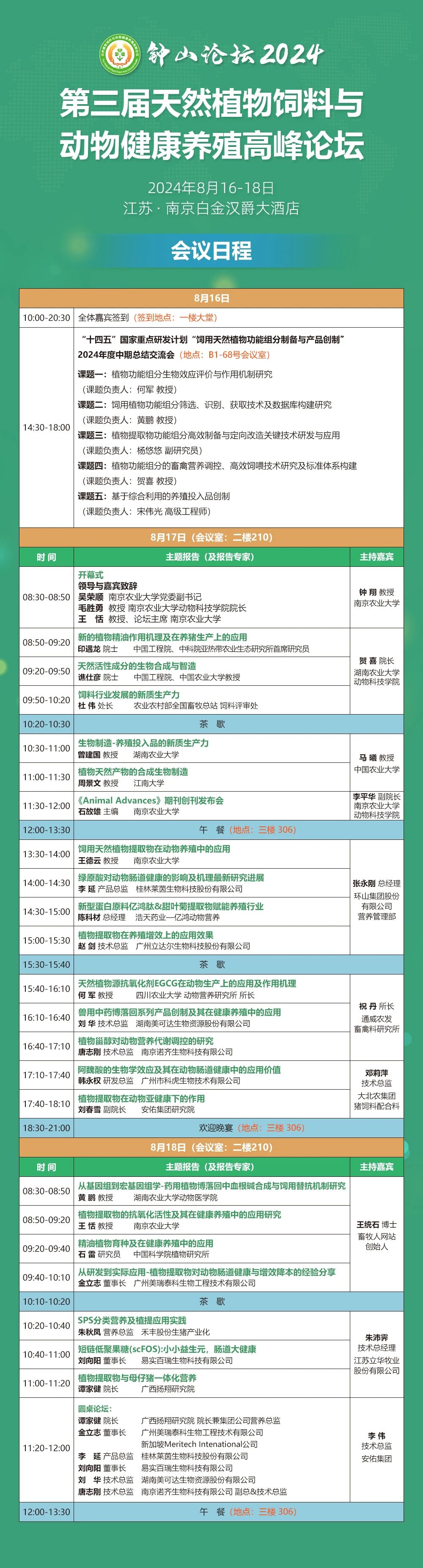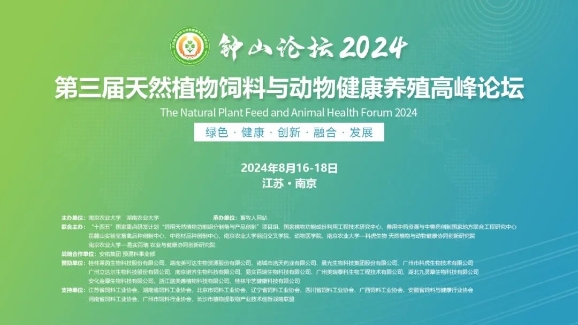由南京農業大學動物科技學院和湖南農業大學動物科技學院聯合主辦的“鐘山論壇2024·第三屆天然植物飼料與動物健康養殖高峰論壇”,將于2024年8月16日至18日在南京白金漢爵大酒店盛大舉行。