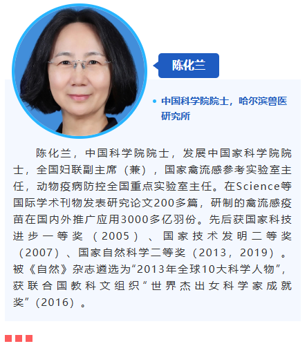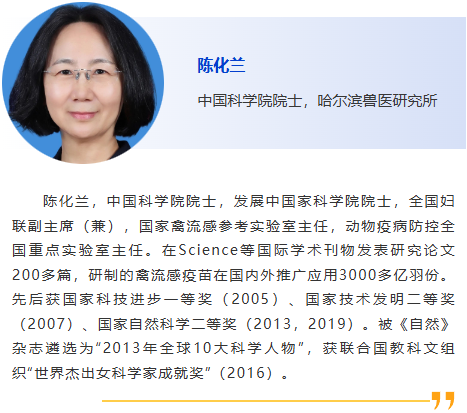 組委會榮幸地邀請到中國科學院院士陳化蘭女士參加第六屆國際獸醫檢測診斷大會!陳院士是中國動物疫病防控領域的重要專家,長期在動物傳染病研究和防控工作中做出了卓越貢獻,特別是在禽流感等重大動物疫病的防控方面,具有重要影響力。