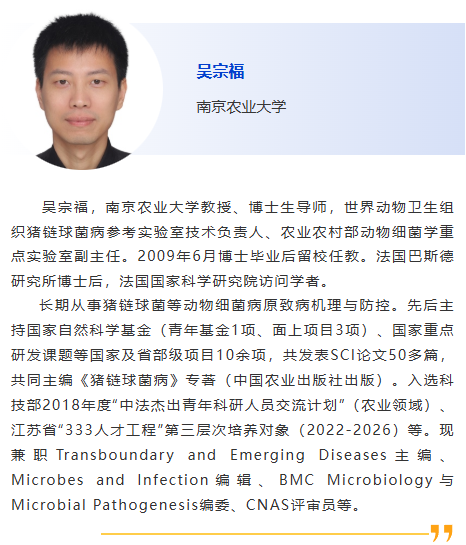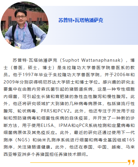 1:30pm –免提法PCR技術,樊福好,農業農村部種豬質量監督檢驗測試中心(廣州) 2:00pm - 豬鏈球菌的分子診斷分型,蘇普特·瓦塔納潘薩克,朱拉隆功大學 2:30pm – 贊助商報告 |
