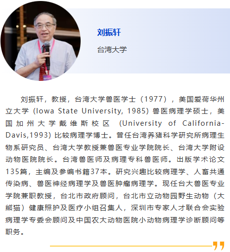 9:00am – 主題演講1 – 待定 9:30am – 主題演講2 – 從組織到影像:新興的無玻片組織學技術 - Derick Whitney,Global VetLink 10:00am – 休息 10:30am – 熱點話題 1 – 待定, Francisco (Paco) Uzal, 加利福尼亞大學-戴維斯分校 11:00am – 熱點話題 2 – 如何讓AI成為獸醫檢測實驗室的智慧助手?,原霖,北京中科基因技術股份有限公司 11:30am – 問答 |