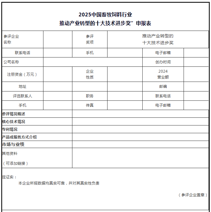 4、表彰階段(12月6日)。最后結果將在“2025第22屆畜牧飼料科技與經濟高層論壇頒獎”儀式上公布“2025中國畜牧飼料行業——“推動產業轉型的十大技術進步獎”獲獎企業名單并頒獎。