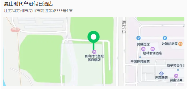 會議地點:江蘇昆山,昆山時代皇冠假日酒店(江蘇省昆山市前進東路333號,0512-57128666)