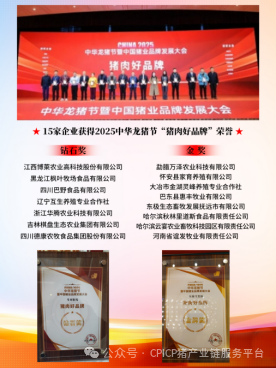 2025年1月6日,2025中華龍豬節暨中國豬業品牌發展大會,中國豬肉品牌聯盟論壇委員會承辦的“豬肉好品牌”評選,15家企業獲得2025中華龍豬節“豬肉好品牌”榮譽。