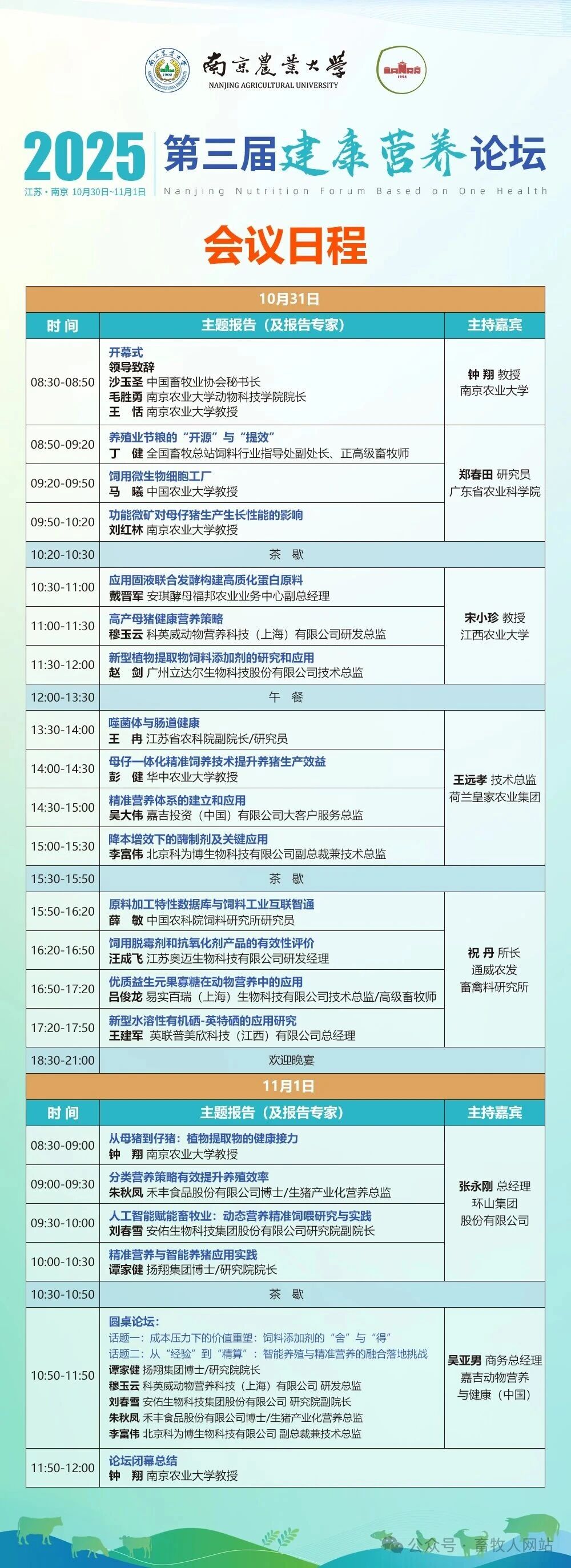 2025第三屆建康營養論壇將于10月30日-11月1日在南京舉辦,聚焦動物營養創新、綠色養殖與精準營養等前沿領域。誠邀行業專家、企業代表共聚,探討新質生產力賦能健康未來。優惠報名至10月20日,歡迎報名參會!