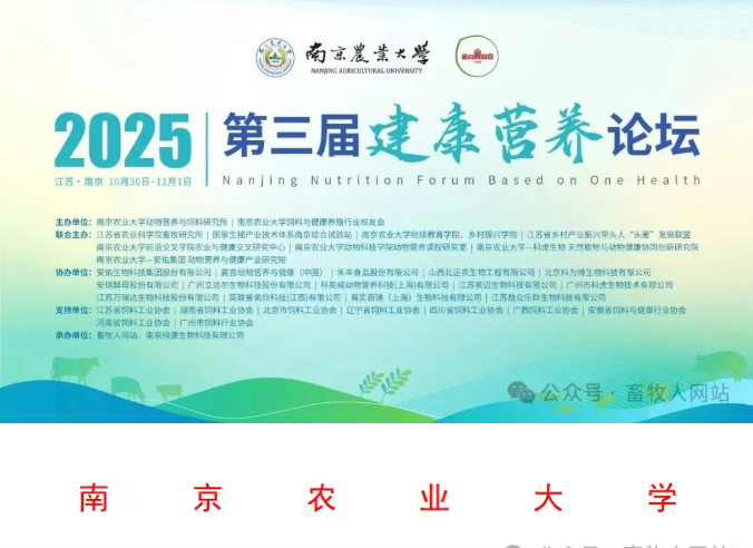 為踐行“同一健康(One Health)”全球行動理念,推動畜牧業高質量發展與人類健康協同共進,第三屆建康營養論壇定于2025年10月30日-11月1日在南京盛大啟幕。本屆論壇以“動物營養驅動可持續發展·新質生產力賦能健康未來”為主題,聚焦動物營養技術創新、綠色低碳體系構建、精準營養與智能養殖、飼料資源高效利用等前沿領域,誠邀主管部門、科研院所、技術服務機構及產業鏈相關企業代表共襄盛會,以新理念、新技術、新模式共筑畜牧業可持續發展新生態,為保障糧食安全與公共衛生安全貢獻智慧力量。