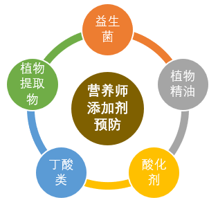 飼料營養師反饋,一般采用對腸道致病菌具有抑菌效果的產品及對腸道黏膜具有修復功能的產品;主要有益生菌、植物精油、酸化劑、丁酸類產品及植物提取物。