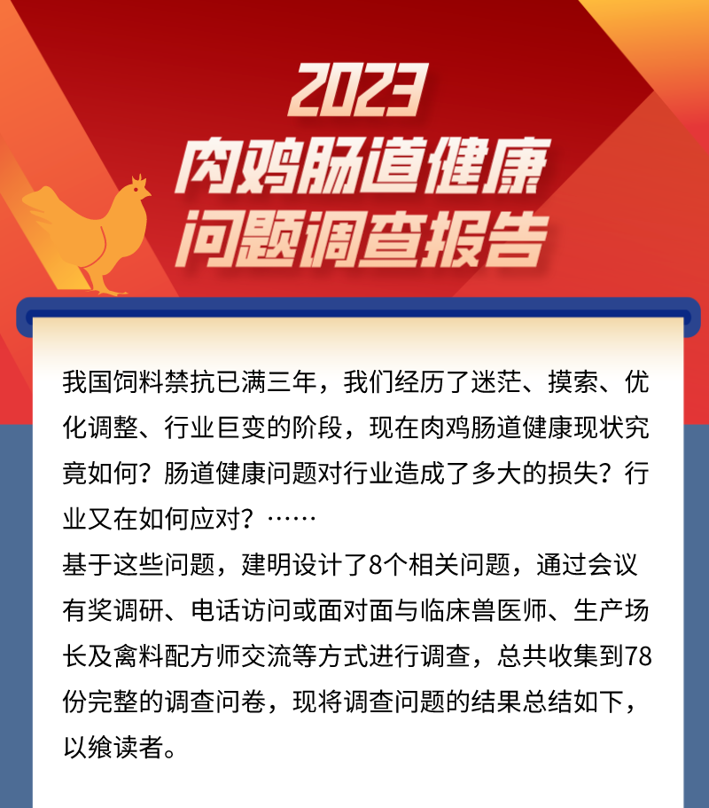 致謝:感謝為此次調查提供答案和數據的分布在全國各地的現場獸醫師、生產場長、禽料配方師,是你們的無私奉獻才讓本次調查有了這些可以展示的結果,讓行業對禁抗后家禽腸道健康問題和應對方案有了一個全面而深刻的認識,建明為你們點贊!