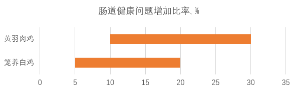 ? 相比飼料禁抗前,籠養白雞腸道健康問題增加5-20%,黃羽肉雞腸道健康問題增加10-30%。