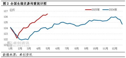 由于春節前養殖端降低生豬出欄體重,大體重生豬存欄減少,尤其養殖大體重生豬的主要群體-中小散戶多數處于空欄狀態,節后大豬供應偏緊,支撐2月份肥標豬價差逐漸擴大,2月末全國肥標豬價差達到階段性最高的1.17元/公斤。在肥豬價格優勢的提振下,養殖端壓欄增重情緒漸濃,生豬出欄體重逐漸提升,據卓創資訊監測,全國生豬交易均重由春節假期后的122.23公斤增至4月末的126.32公斤,累計上漲4.09公斤。伴隨著節后大體重生豬存欄逐漸增加,飼料需求增多,支撐4月份生豬飼料銷量環比增加。