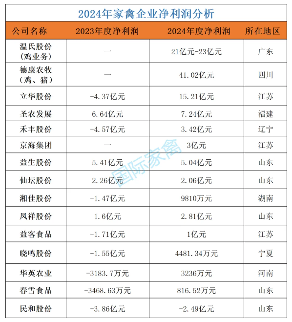 15家禽企業績公布!溫氏、立華、圣農、禾豐、鳳祥、京海、益客、春雪、曉鳴、民和、華英等2024年凈利潤大幅提升