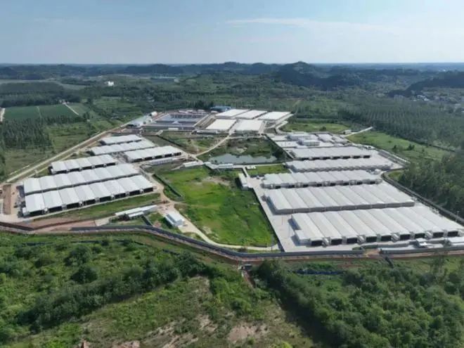 融通農發牧原(簡陽)有限責任公司注冊資金為1.2億元,簡陽一場生豬養殖項目占地454.68畝,2022年9月開工建設,2024年7月投產。養殖場具備年出欄10萬頭規模,場內擁有保育育肥一體舍76個單元、懷孕舍16個單元、哺乳舍16個單元以及后備舍9個單元。