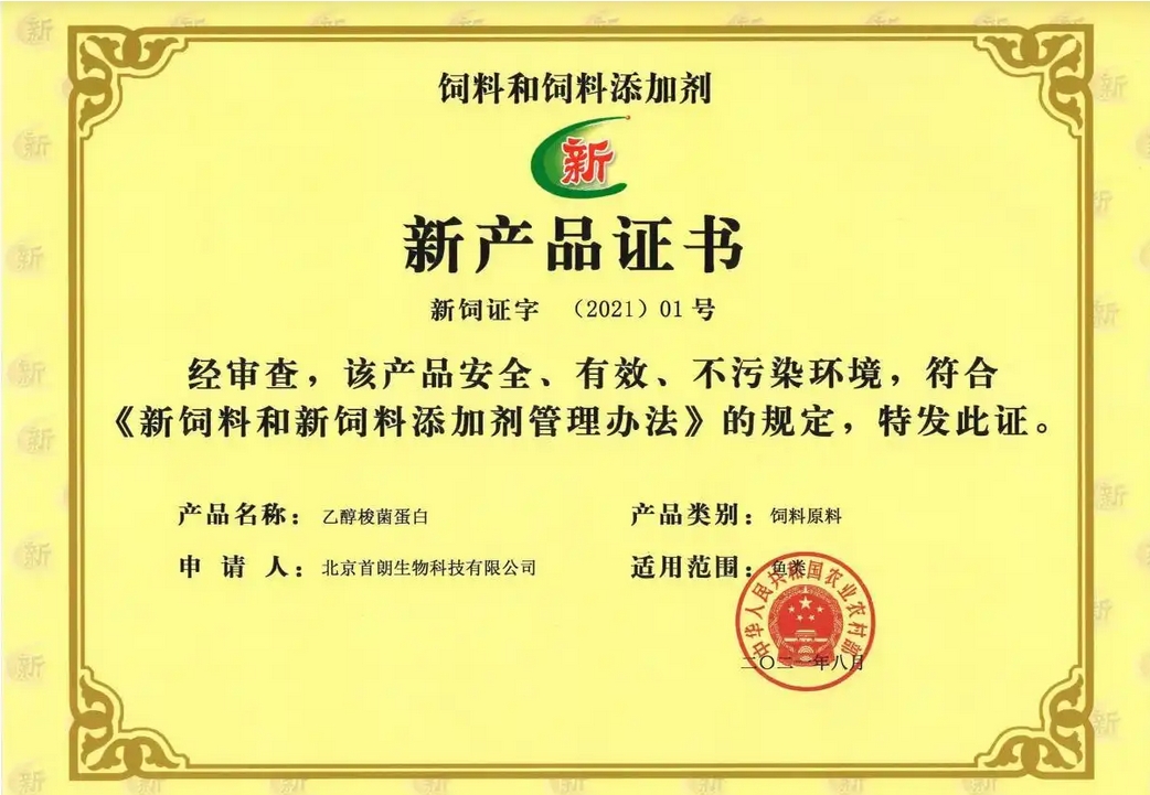 作為中國首個新型飼料蛋白原料,首鋼朗澤的微生物蛋白已奠定行業標桿地位。2021年,該產品獲農業農村部頒發的中國首張飼料原料類別新產品證書(新飼證字[2021]01號),并入選中國農業農村重大科技新成果,同時主導制定了乙醇梭菌蛋白產品行業標準,成為行業技術規范的制定者。