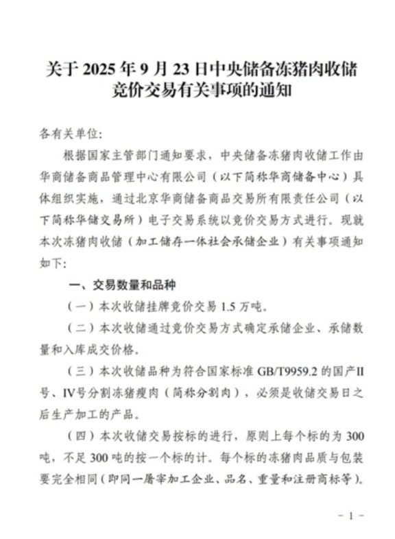 另一方面,國家層面針對生豬市場的調控力度持續加碼。據華儲網消息,9月28日中央儲備凍豬肉輪換出庫競價交易,掛牌國產凍肉1.5萬噸,系9月以來第四次通過儲備肉來調控豬價走勢。