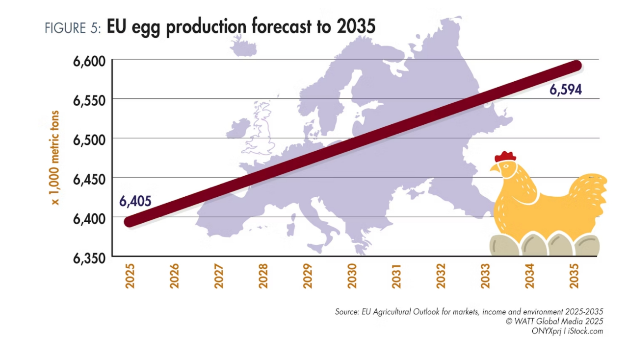 到2025年,歐盟(EU)預計每年將生產超過640萬噸雞蛋,并在2035年將其產量增加近3%,達到660萬噸(圖5)。