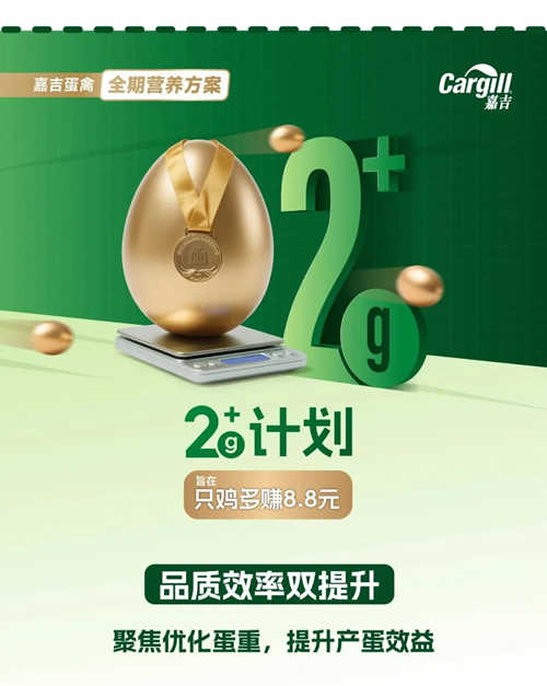 作為嘉吉三大增效解決方案的重要組成部分8枚+計劃(攻蛋數)與2g+計劃(攻蛋重)、1910俱樂部(低料比)共同構成嘉吉蛋雞增效計劃的完整解決方案,為不同需求的養殖場提供針對性增效路徑。