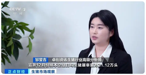 卓創資訊生豬行業高級分析師 鄒瑩吉:截至12月19日,監測12月份樣本企業日均生豬屠宰量為21.12萬頭,同比增加0.37%,屠宰量增幅相對有限。前期能繁母豬存欄量處于相對高位,對應當下生豬供應充裕。同時,養殖端正處于年底沖量階段,進一步增加了生豬供應。