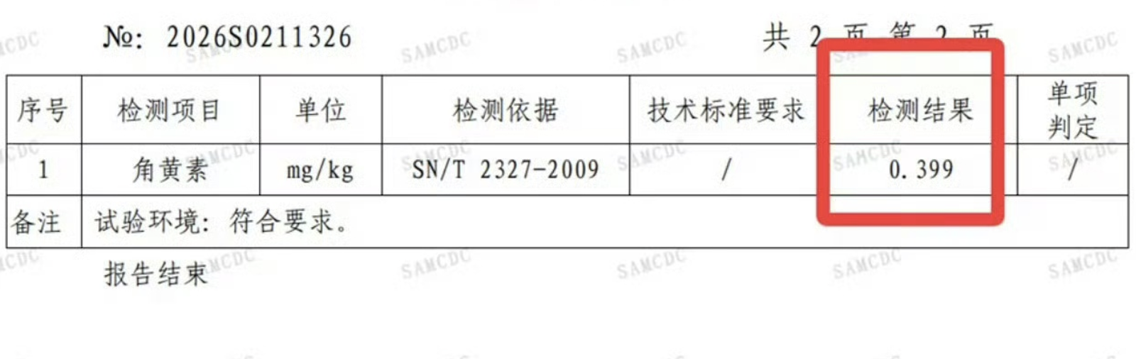 “如果監管最終查明來源確屬人工添加,那當然與‘無人工色素’直接沖突,涉嫌欺詐。”王海團隊相關負責人同時表示,即便黃天鵝堅持“天然本底”說,在消費者已被長期引導形成“自然金黃”認知的情況下,出現角黃素檢出本身就足以引發合理懷疑。