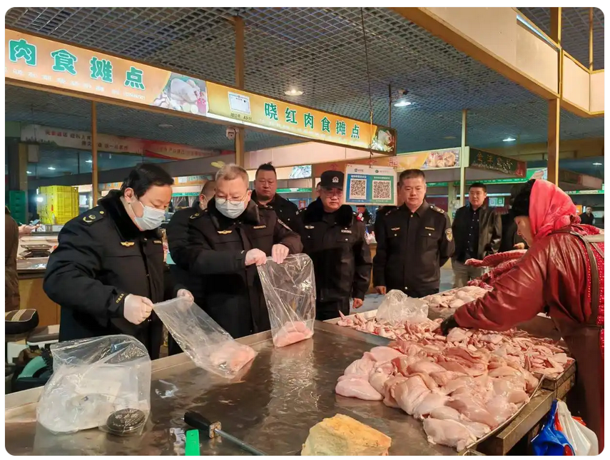 本次行動堅持跨部門治理、全鏈條打擊的思路,聚焦農批(農貿)市場肉類經營業戶、冷庫經營業戶,重點檢查是否銷售來源不明、未經檢驗檢疫或者檢驗檢疫不合格的肉類,是否銷售腐敗變質、超過保質期的肉類產品,是否違規銷售貂狐貉胴體等法律法規禁止銷售的肉類產品等行為。緊盯生豬屠宰企業收購、屠宰、檢疫、出廠等關鍵節點,重點檢查是否有收購屠宰未檢疫生豬、病死豬行為,以及待宰、屠宰過程中是否存在注水注藥,出廠豬肉產品是否檢驗檢疫出證。