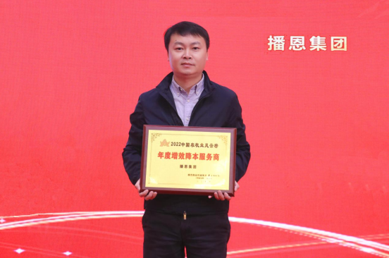 2023年2月21日,由南方報業傳媒集團、南方農村報社主辦,農財寶典、新牧網承辦的2022第十二屆中國農牧業風云會在廣州盛大舉行。經過前期激烈的網絡投票,以及專家、金牌服務商、協會、種豬場評委綜合評選,播恩集團榮獲“2022年度增效降本服務商”稱號,播恩集團華南戰區總監曾總代表公司上臺領取榮譽。