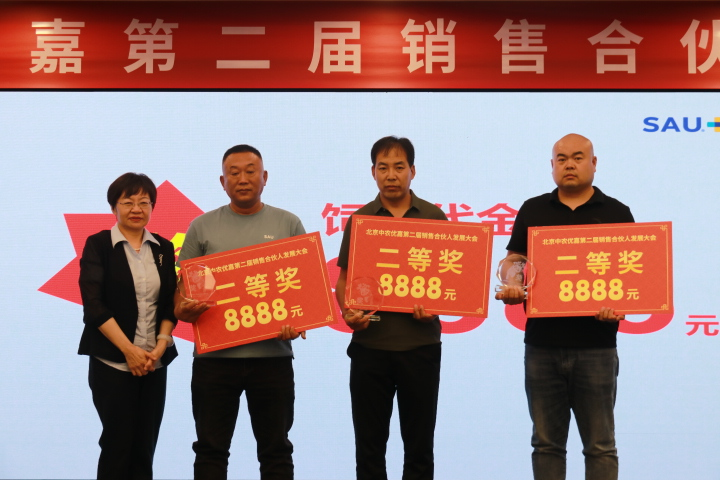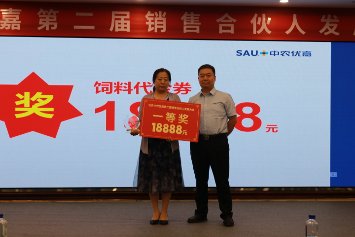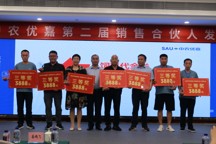 最后中農優嘉預混料事業部楊俊暉總經理為優秀銷售合伙人進行表彰。