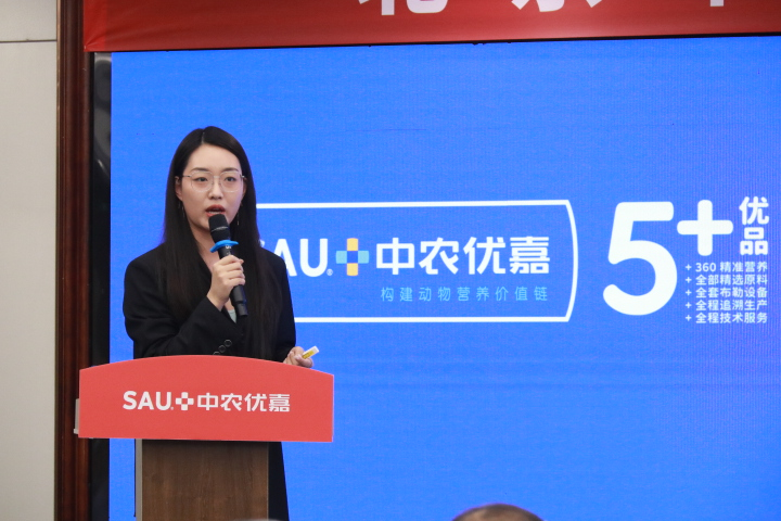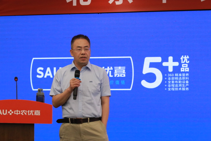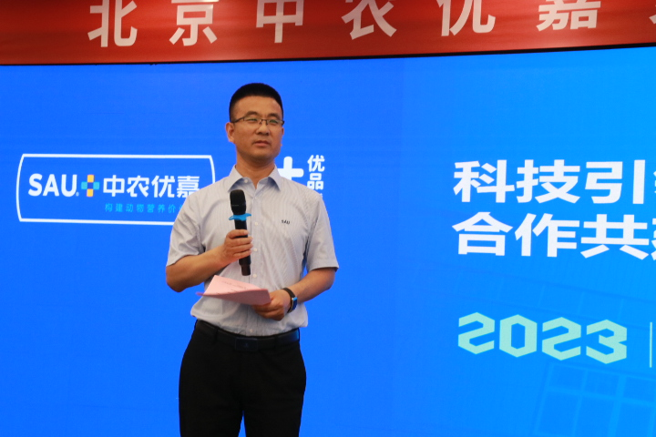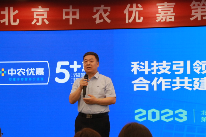 岳鵬飛總經理做了《堅持不斷創新,打造技術領先的預混料企業》的報告。岳總表示疫情以來中農優嘉年銷量持續增長,公司銷售區域基本覆蓋全國二十多省份,以中國農業大學動物科技學院為理論依托,以全球動物營養先進技術為方向,著眼當下規模養殖,特別是大型產業鏈養殖企業的新品種、精準營養、環境友好、健康養殖,高品質畜產品(特色畜產品)為核心的發展需求,以“中農優嘉研究院”為技術創新平臺,以預混料、添加劑為載體,強化技術投入,聚集優秀人才,強化產品不斷創新,加快產品迭代升級。