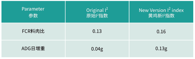 表 黃雞新I2指數與料肉比、日增重的相關性