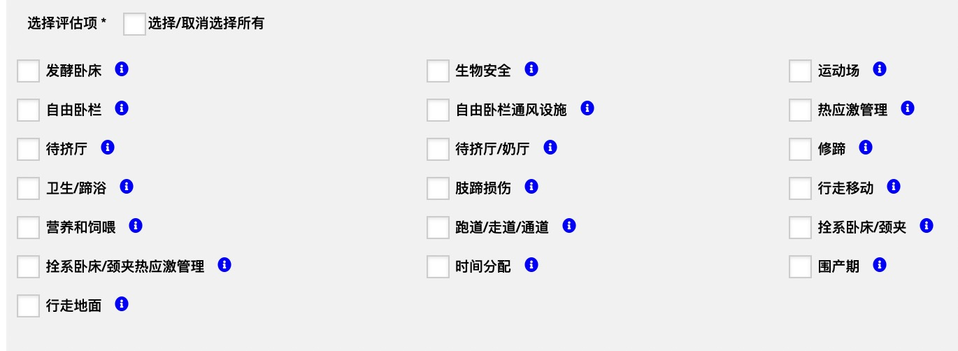 第一步®App的評估項目還包括:圍產期、自由臥欄、衛生/蹄浴、時間分配等,共計19個評估項。
