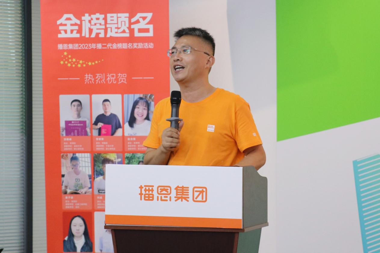 在歡慶的頒獎典禮現場,我們感受到了播恩人溢于言表的喜悅之情。播恩集團副總裁/營銷中心總監曹劍波出席頒獎儀式并致辭,他以一首七言絕句引入,表達了對莘莘學子金榜題名的熱烈祝賀。曹總勉勵集團播二代在新的學業征程上,乘長風,破萬浪,耕讀傳家,立志報國,永不止步,永遠前進!用汗水譜寫未來的嶄新華章。(曹總發言全文:明德至善,夢想飛揚)