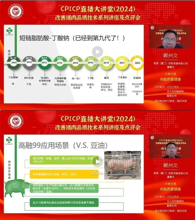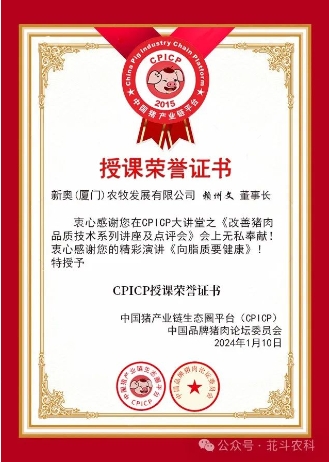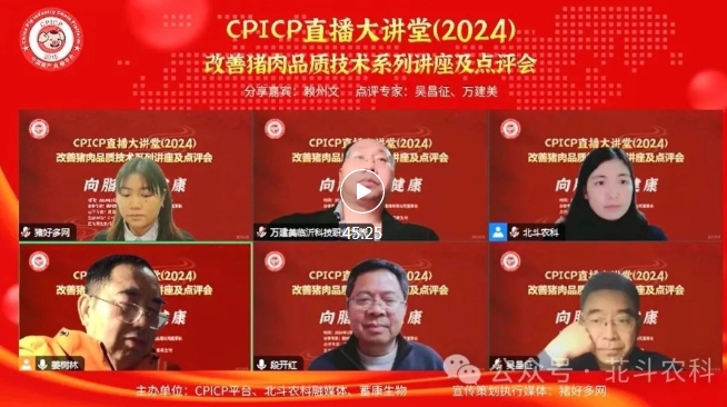 下一次CPICP大講堂《改善肉質技術系列講座與點評會》公益講座 第2場,在1月17日晚8點準時開講,屆時將由河南農業大學王志祥教授分享《脂肪酸平衡及對母仔豬的影響》的主題。期待您的觀看參與,1月17日晚8點,我們不見不散!再見!