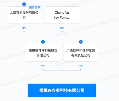 此外,廣西桂林市桂柳家禽有限責任公司也為櫻桃谷合作企業。2019年,櫻桃谷與廣西桂林市桂柳家禽有限責任公司共同成立櫻桃谷農業科技有限公司,櫻桃谷持股51%,后者持股49%。