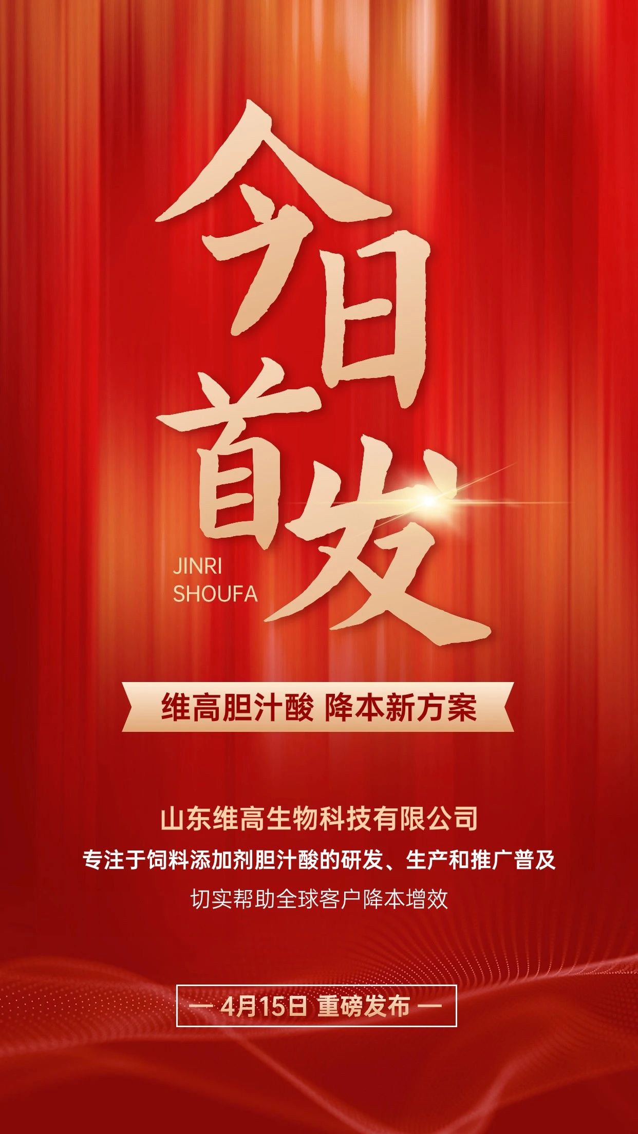 山東維高的企業使命就是在全球市場做膽汁酸的推廣普及,用短平快的方式告訴用戶為什么添加膽汁酸,添加膽汁酸能降低多少成本,能增加多少效益,如何正確使用膽汁酸等,力爭用5到10年的努力,切實將膽汁酸產品做成像維生素氨基酸在飼料配方中的通用水平。