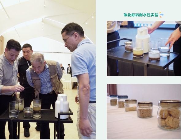 現場進行了正昌熟化蝦料耐水性實驗,飼料耐水性好不僅可以提高飼料利用率,減少浪費,還可以保護水質,收獲了全場的目光。
