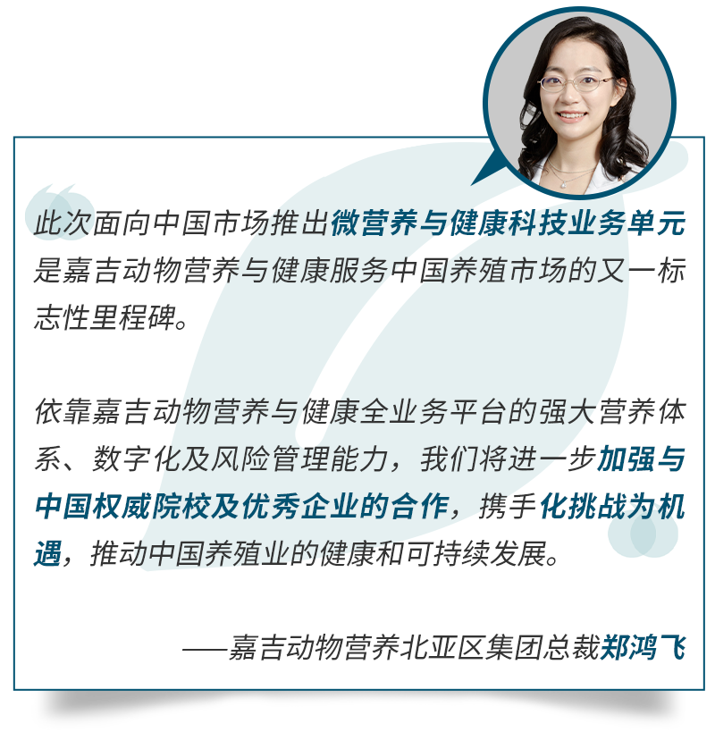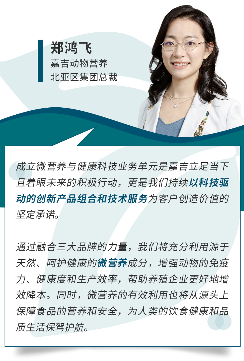通過科學驅動的整體營養解決方案、通過全球資源與本地專業知識的結合,嘉吉提供差異化的產品和定制化的營養方案,優化營養利用率、支持動物免疫提升和提高生產效率,助力養殖業的增效降本和可持續發展。