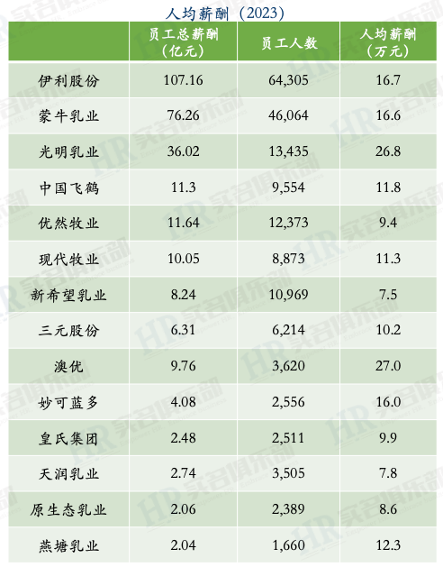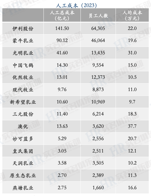 近日,HR實名俱樂部對乳品行業內的14家領先企業進行了深入的數據匯總與分析后,揭示了過去兩年間各企業的收入與利潤、人效與人工成本,以及扣減社保后的員工薪酬情況。
