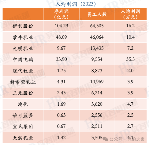 再對比人均利潤,中國飛鶴人均利潤35.5萬元,其次是伊利股份16.2萬元。