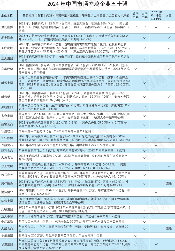 2024年中國市場肉雞企業50強