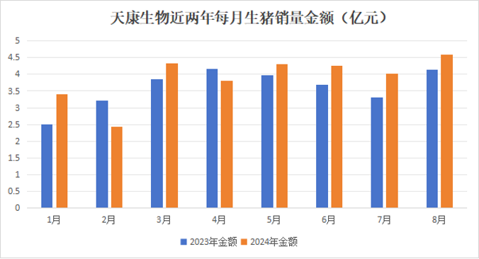 從單月數據來看,從5月以來,天康生物已連續4個月生豬銷售收入超過4億元,尤其是8月份,銷售收入達到4.58億元,創2022年10月以來23個月新高。