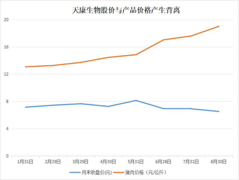 與公司業績背離的是,反觀天康生物股價,自5月以來,累計跌幅超過30%。